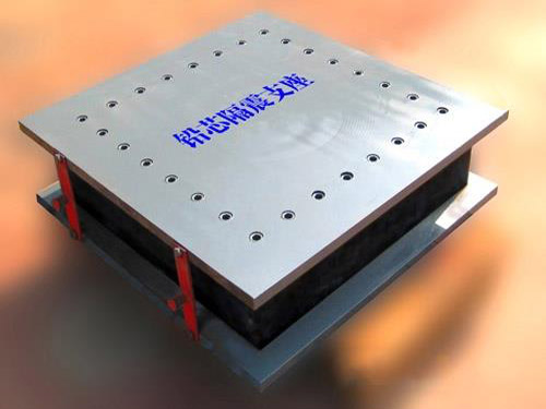 由上連接板 上封板、鉛芯、多層橡膠、加勁鋼板 、保護層橡膠、下封板和下連接板組成。多層橡膠、加勁鋼板構成多層橡膠支座承擔建筑物重量和水平位移的功能,鉛芯在多層橡膠支座剪切變形時,靠塑性變形吸收能量,地震后,鉛芯又通過動態(tài)恢復與再結晶過程,以及橡膠的剪切拉力的作用,建筑物自動恢復原位。對應不同鉛芯、橋梁的要求,隔震橡膠支座可以有不同的疊層結構、制造工藝和配方設計,以滿足所需要的垂直鋼度、側(cè)向變形、阻尼、耐久性、傾覆提離等性能要求。